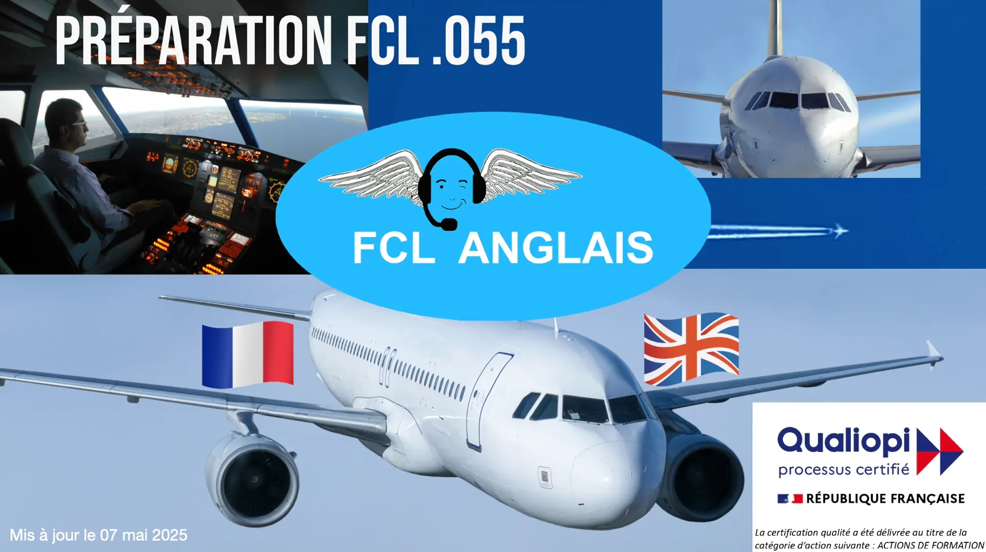 PROGRESSEZ EN ANGLAIS AERONAUTIQUE FCL .055. Préparation au FCL .055 AESA en anglais ou en français, CONTRIBUEZ À LA SÉCURITÉ DES VOLS. Test gratuit (hors CPF) en ligne. Formations pour les qualifications de niveaux de langue OACI en anglais ou français en face-à-face à distance.